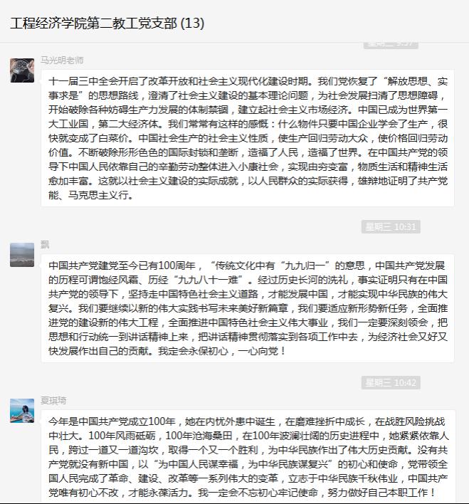 通过这次活动,加深了支部党员对党史学习教育活动重要性的认识,增强了党员们为人民服务的主体意识,一致认为,为中国人民谋幸福,为中华民族谋复兴应从我做起,从现在做起,从本职工作做起,从具体的教书育人做起,从学生管理做起,从点点滴滴的学习生活做起,把初心使命落实到具体的行动中。