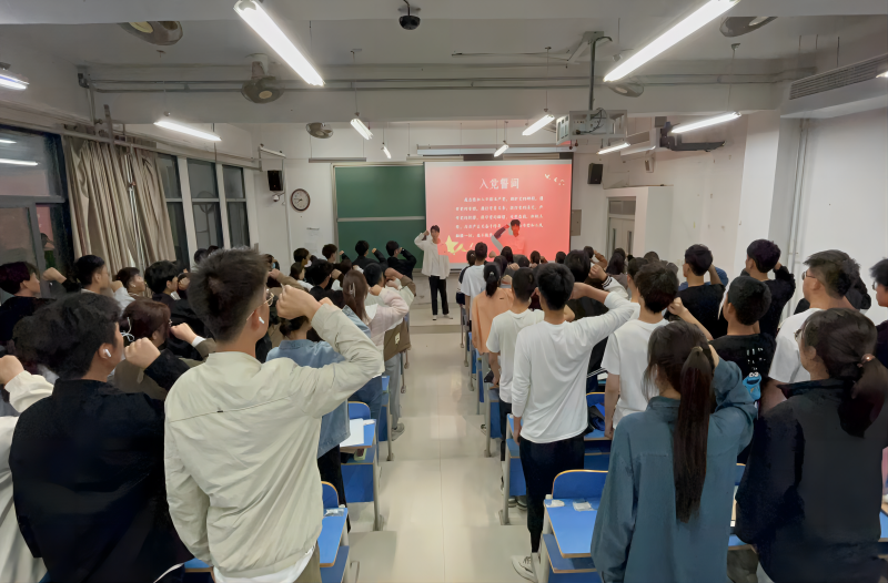 为进一步教育引导新葡萄官网全体学生党员、团员坚定理想信念,充分发挥先锋模范作用,5月4日,新葡萄8883官网amg组织全体学生党员及优秀共青团员在2022教室开展“同温一段誓词 激励担当作为”主题宣誓活动。团总支书记谢雯参加本次活动.