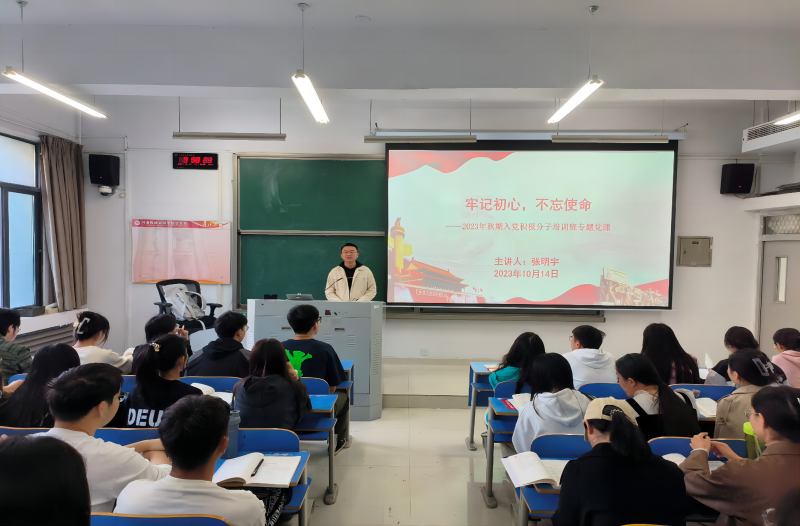 为进一步提高入党积极分子思想觉悟,传承党的优良作风,赓续红色基因,强化理想信念,10月14日上午,新葡萄8883官网amg学生第三党支部书记张明宇为全体2023年秋期入党积极分子讲授《不忘初心、牢记使命》专题党课。