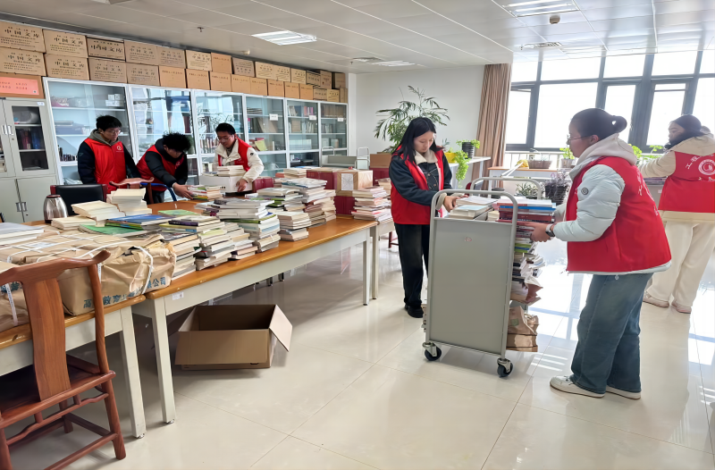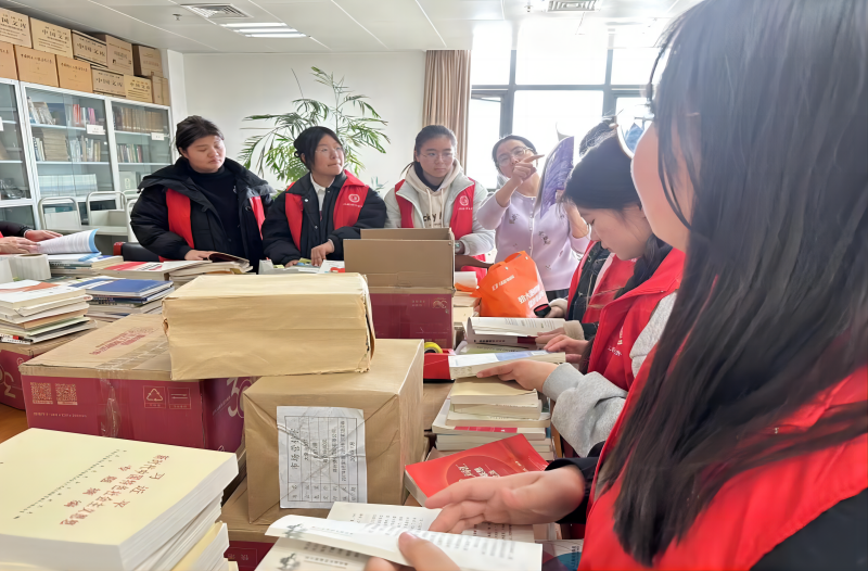 活动分为两组,一组由学生党员代表牵头,带领志愿者和入党积极分子组成团队,积极号召周围同学们为乡村地区的孩子捐赠书籍和衣物,为更多需要关心的人传递爱心和温暖。另一组同学在图书馆开展为期四天的志愿服务活动,大家认真帮助老师回收、归类、摆放各类图书,打扫卫生,为同学们营造整洁、有序、舒适的阅读氛围。