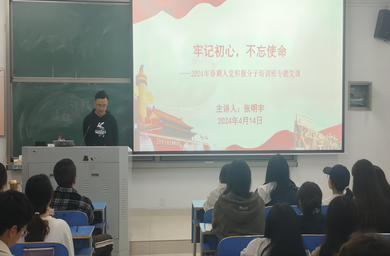 为坚定入党积极分子的理想信念,进一步提高同学们思想觉悟,积极向党组织靠拢,牢记初心使命,4月14日新葡萄8883官网amg学生第三党支部书记张明宇在2213C教室为2024年春期入党积极分子讲授主题为《不忘初心  牢记使命》专题党课。
