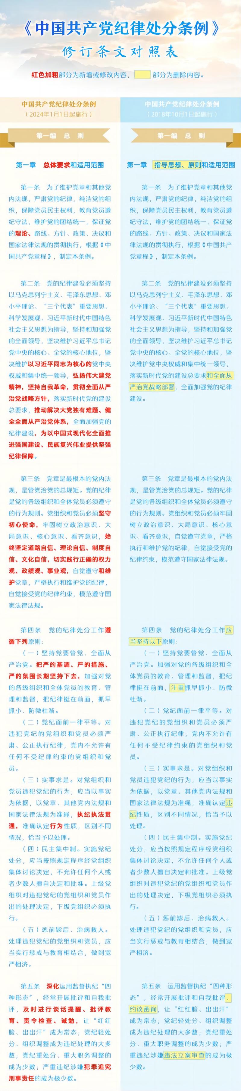 《中国共产党纪律处分条例》修订条文对照表