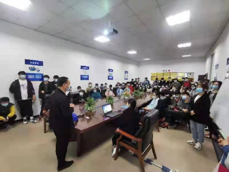 新蒲远大公司位于新乡市平原新区,作为我省最早的全国示范性装配式生产基地,其工艺流程具有中原地区较高的水平。在参观的过程中,首先由负责品控的崔经理依照公司园区的功能分区,根据样板区的成品及半成品建筑介绍了加工细节及装配式构配件的安装浇筑工艺;随后进入预制构件制作车间介绍了不同构件的制作工艺;最后进入公司会议室,用动画视频的形式立体形象地展示了装配式建筑完整的建筑施工流程,让同学们对装配式建筑构件的生产工艺及装配式建筑整体施工流程有了初步的认识和了解。最后,王总从行业、企业的角度为同学们讲解了在校期间应该注重的知识结构储备、未来行业发展前景等内容,给予学生们极大的鼓舞。