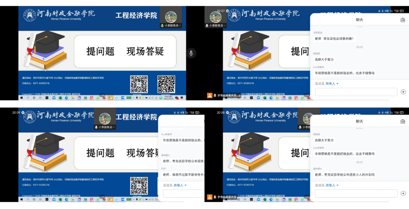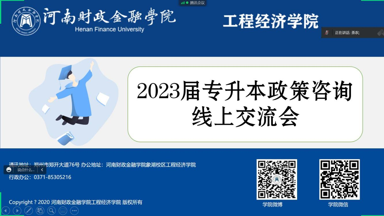 为进一步提高工程经济学院学子备考专升本的热情,帮助其明确目标,掌握相关专升本技巧,了解更多专升本信息,增强学生们的信心和决心,10月30日晚新葡萄8883官网amg举办了专升本政策咨询线上交流会。党总支副书记刘星、工程造价教研室主任王领、工程管理教研室主任李旭辉、专任教师郭蓓蓓、各班辅导员老师及2020级专升本学生参加会议。会议由罗倩老师主持。