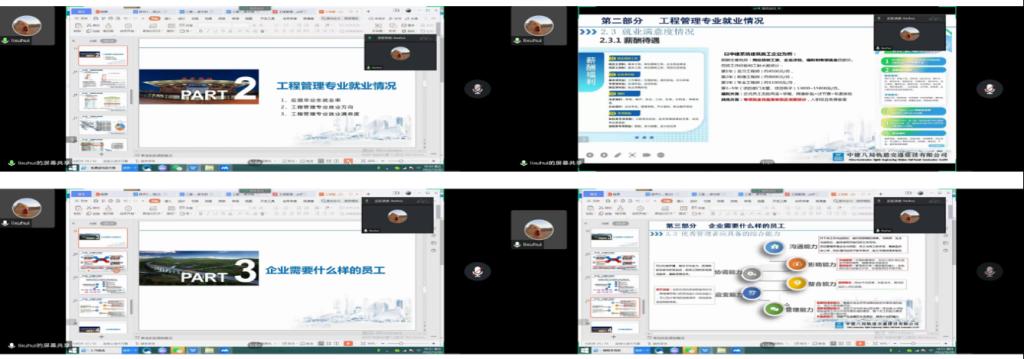 李旭辉老师对工程管理专业进行了就业分析,从工程管理行业的就业率情况、就业前景、招聘需求、薪酬待遇等方面进行了细致的讲解,提出了大学期间学生需要掌握哪些专业技能的建议。