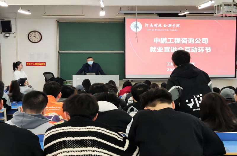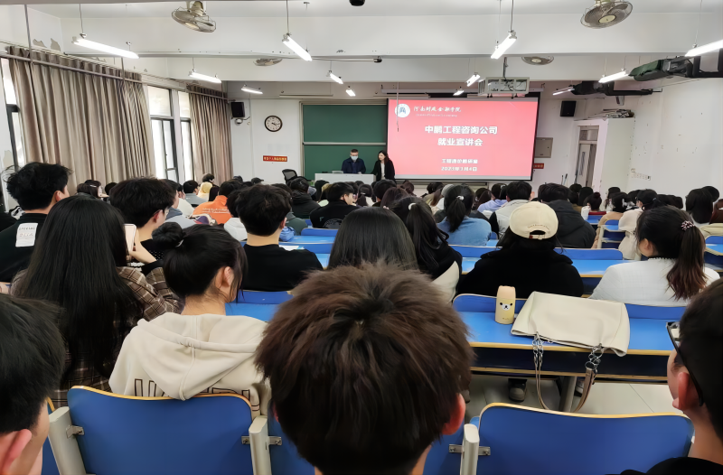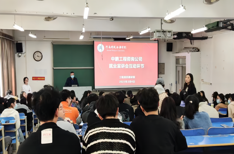 为切实有效促进2023届毕业生更充分高质量就业,3月4号上午,新葡萄8883官网amg工程造价教研室和造价竞技社邀请中鹏工程咨询有限公司副总刘方,在弘毅楼3105C教室为工程造价专业学生举办了线下专场就业与职业规划宣讲会,2019、2020、2021级工程造价专业近200名学生参会。