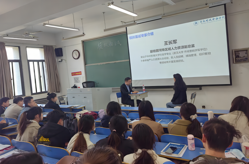4月26日上午,碧桂园河南区域人力资源副经理王长军受邀来到我校,以“应聘者面试技巧分享”为题,为新葡萄官网学生带来一场别开生面的就业指导讲座,200多名学生代表参加。讲座从企业角度分享了常见的面试形式、面试考察重点及面试成功的技巧和策略,在“一对一”实战演练环节,王经理对学生的表现进行详细点评,提出面试前准备工作的建议,引导同学们如何在面试中脱颖而出。大家踊跃发言,现场气氛热烈。