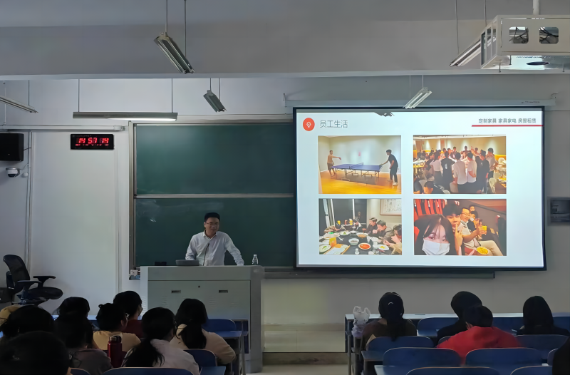 万联美家装饰工程有限公司负责人通过播放宣传片、PPT展示、面对面交流等方式向同学们介绍公司概况、职业发展方向、岗位需求、福利待遇等内容,同时也对同学们关心的工资待遇和职业发展空间等问题进行了详细解答。招聘宣讲会后,万联美家装饰工程有限公司对意向同学进行了初步面试。