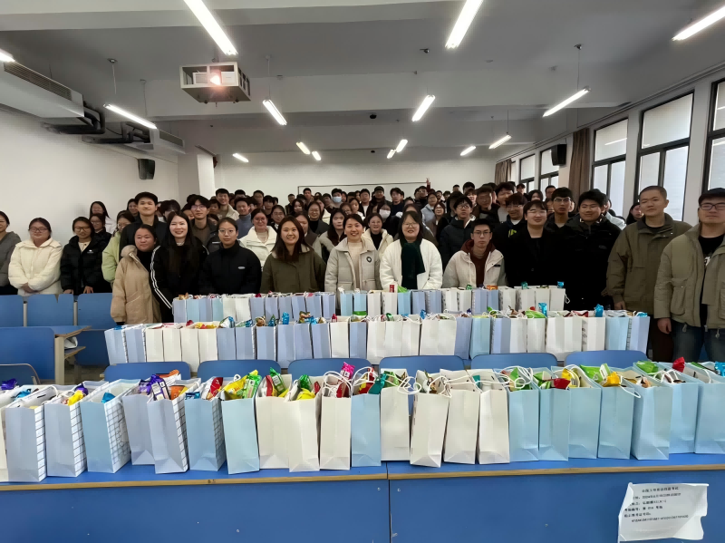李雅鸽、王茜、毕尚美3位辅导员老师代表学院与考研学生代表进行交流,了解同学们的备考情况,向考研学子表示关心与问候,叮嘱同学们在最后冲刺阶段要保重身体,放平心态,坚定信念,预祝大家心想事成,金榜题名!活动现场,老师们为考研学子播放学弟学妹们精心录制的加油视频,送上考研温暖礼包,礼包中的每种礼品都有独特的寓意,承载着全院师生对考研学子满满的祝福与关爱。在这寒冷的冬季,学院的关怀拂去同学们的疲惫,一张张笑脸驱散了严寒,温暖了彼此。大家互相鼓励加油打气,表示定会全力以赴,调整心态,努力实现梦想。