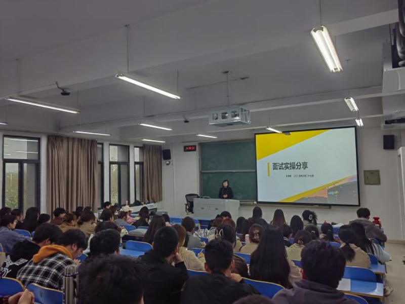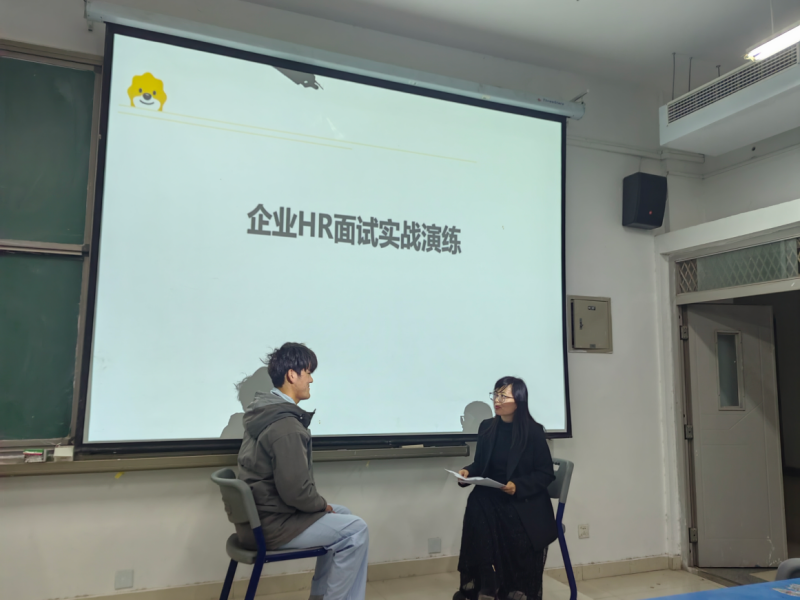 讲座结束后,现场随即开展校园招聘模拟面试活动,面试采用“单面+群面”相结合的形式,模拟真实企业招聘场景。王总监从专业能力、沟通表达、逻辑思维、团队协作等多个维度进行考察,并在每位同学面试结束后给予针对性改进建议。