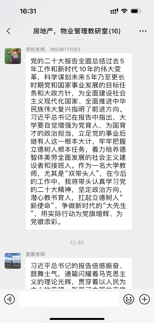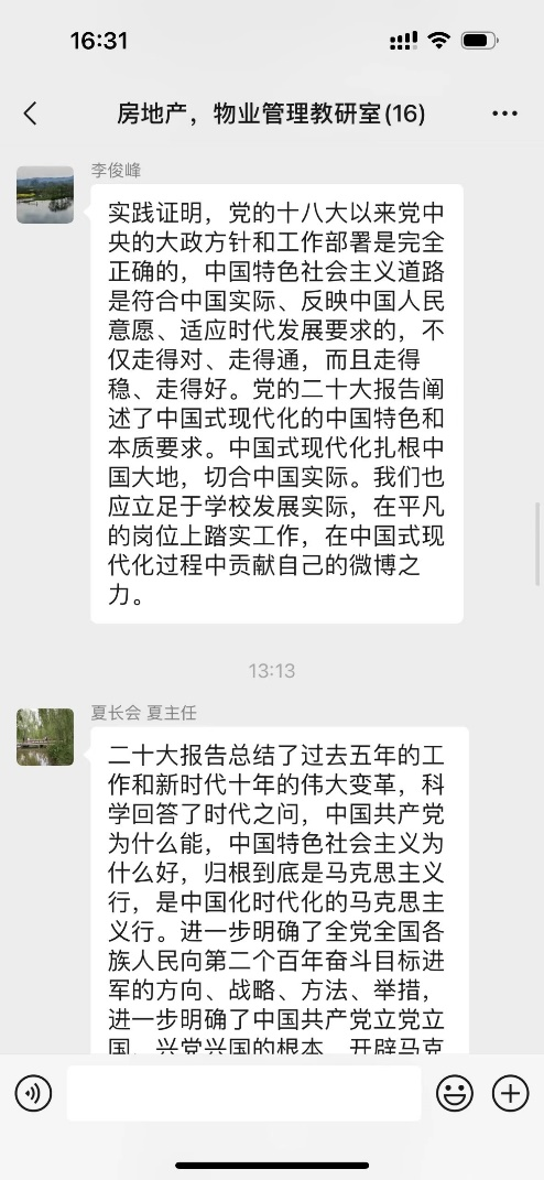 10月18日党支部及时召开党的二十大精神线上学习交流研讨会,党员教师们精神振奋、热情高涨,结合自身工作、学习实际,谈感想、聚力量、谋发展。大家纷纷表示,党的二十大报告饱含了党和人民对教育工作者的殷切期待,凝聚着全党的意志,身处这个伟大的新时代,见证并参与中国的历史性变革,深感荣幸。通过学习交流,全体党员教师进一步提高思想认识、增添干劲。大家一致表示,要立足党的教育事业,踔厉奋发、勇毅前行,把自身专业所长与社会和人才培养需求紧密结合起来,以永不懈怠的精神状态和一往无前的奋斗姿态,持续在为党育人、为国育才上下功夫,在提升教学水平上下功夫,为经济社会高质量发展提供人才和智力支持。