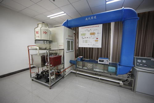 暖通空调实训室成立于2010年7月,实验设备23台(套),设备总值51万元。目前实训室主要承担建筑工程管理、工程造价、物业管理等专业建筑设备工程相关课程中的中央空调模拟实训、采暖系统模拟演示实训以及散热器热工性能实验等实训实验教学任务。