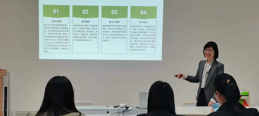 会上,教研室主任鲁艳蕊对教研室上学期开展教学磨课情况进行总结,对本次进行交流、互相学习、共同进步提出要求。各位老师依次作教学磨课汇报交流。在听取了王佳楠老师对《工程图学》的讲解后,大家对其教学过程中的规范性和完整性作为学习亮点。王璐老师在讲解《室内空间在住宅中的应用及实例分析》中提出“可爱空间”的设计理念,大家对其教学过程及教学方式高度赞美。鲁艳蕊老师以《工程图学》为案例,在教学过程中灵活运用数字化软件及测评工具,将教与练充分结合来提高教学质量。马风华老师对《住宅建筑设计》进行教学分析,提出教材中的亮点与不足,其中马老师总结的“六大教法”为大家学习与借鉴。