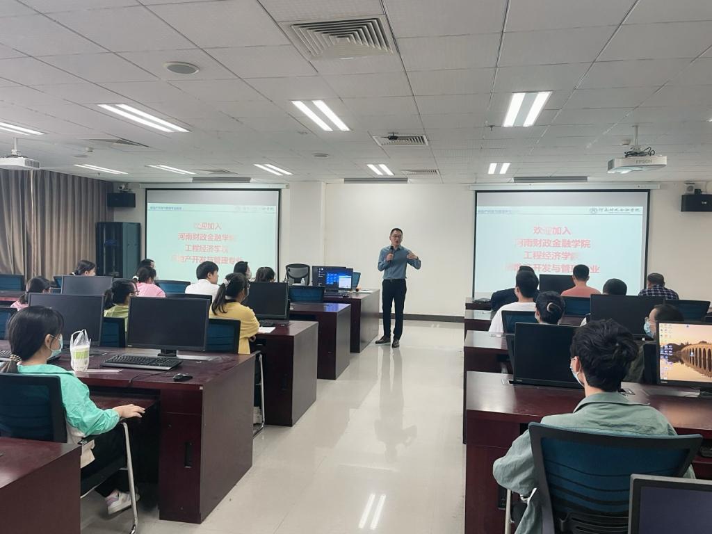 房地产教研室主任李凯首先向2022级新生表达了热烈欢迎,并就我校房地产专业的发展历程、师资力量、校企合作、产教融合等方面进行了介绍,还就同学们未来就业方向、职业生涯等内容进行了分享。接着师生们就大学期间的生活、专业学习、考研考公、未来职业规划等进行了互动。老师们详尽回答了学生们提出的各类问题。
