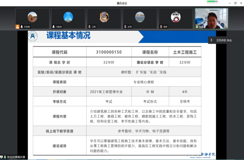 2023年2月10日上午,依据学校工作安排,工程管理教研室通过腾讯会议组织开展2022-2023学年第2学期教师新开课、开新课试讲工作,教研室全体教师参加。