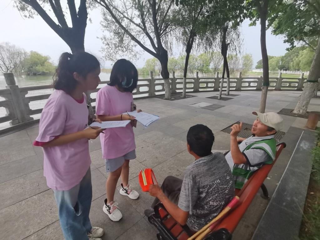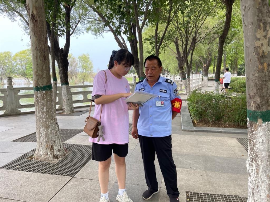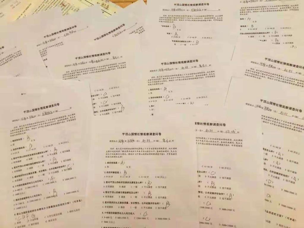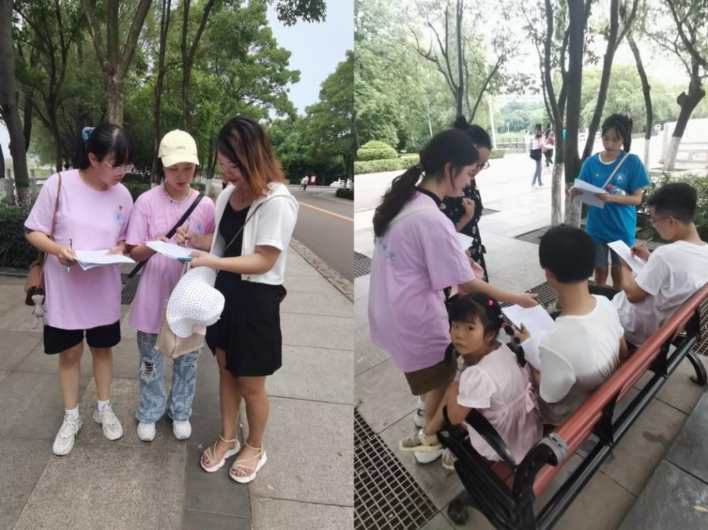 在调研期间,工程经济社会实践团队走访平顶山新城区街道,通过向市民问询和问卷调查的方式,对平顶山市区变化进行调研。同学们不畏酷暑和蚊虫,在街道上发放问卷,面对视力不好的老年人,同学们耐心的一问一答帮助其完成问卷,展现了当代大学生的优秀品质。