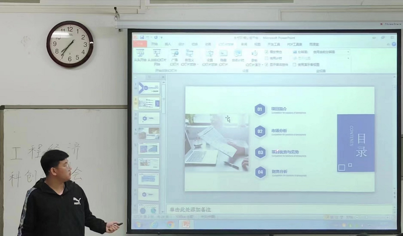 2022年3月11日星期五在教室1104B开展了新葡萄8883官网amg“挑战杯”交流会。本次交流会辅导员老师夏琪琦、罗倩,学生会主席伍迎龙作为指导,各参赛小组的组员进行演讲。