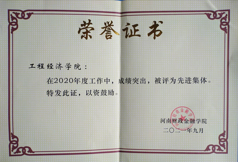 根据豫财院[2021]160号《关于表彰2020年度先进集体和先进个人的决定》,新葡萄官网被授予新葡萄8883官网amg2020年度先进集体荣誉称号。