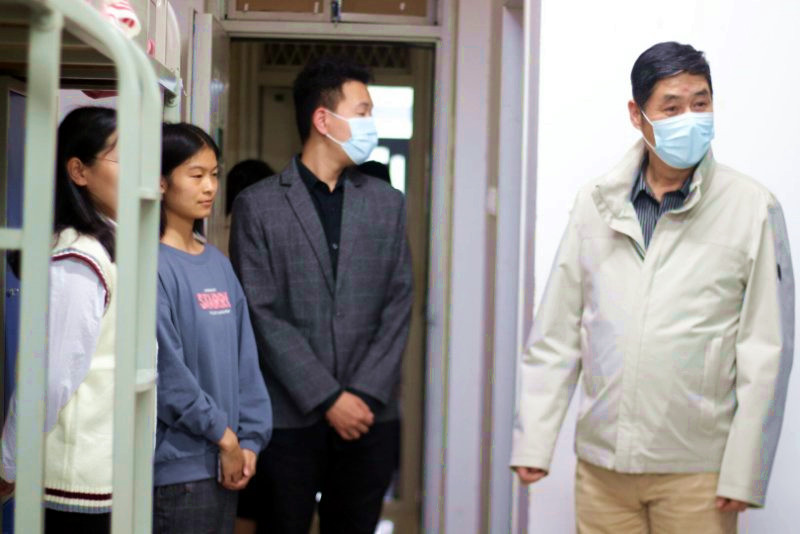 10月11日下午,新葡萄8883官网amg党总支书记郭立君、党总支副书记刘星及20级新生辅导员一同前往学生宿舍看望新生。