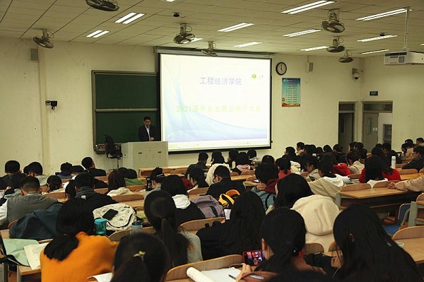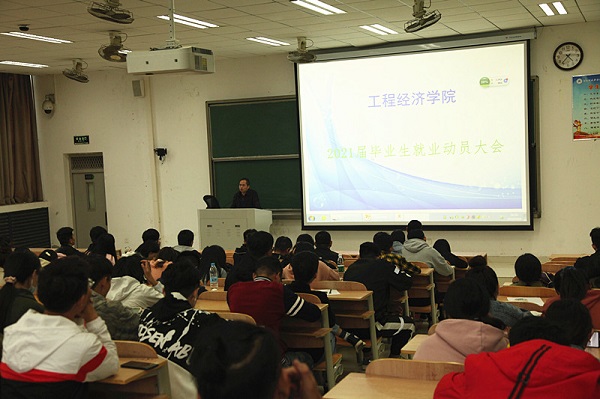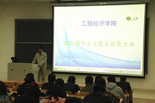 院长孔祥慧就同学们考研就业提出“三途径”模式。第一个途径是同学们可以考研,结合自己能力恰当报考院校;第二个途径是同学们参加考公,可以异地多途径参加考公;第三个途径不错过选择就业的机会,适时就业。每种途径都有同学们走向成功的契机,希望同学们三箭并发,认真抓住每个途径带来的契机。最后,孔院长希望同学们不断提升自己,着眼大局,着眼发展,着眼未来,并提出了四个目标:一是争取在本届毕业生出一个研究生宿舍,二是争取在本届毕业生出一个公务员宿舍,三是争取在本届毕业生出一个造价师的宿舍,四是争取在本届毕业生出一个总经理、董事长宿舍。