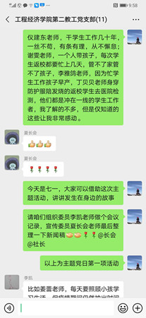 为庆祝中国共产党成立99周年,新葡萄8883官网amg党总支教工第二党支部于7月1日开展了以“牢记初心使命、争当出彩先锋”为主题的线上大讨论。