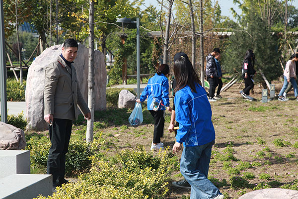 10月26、27日两天,新葡萄8883官网amg党总支书记郭立君、院长孔祥慧、党总支副书记刘星、副院长秦元毅带领全体教工党员、学生干部及学生入党积极分子打扫校区卫生。