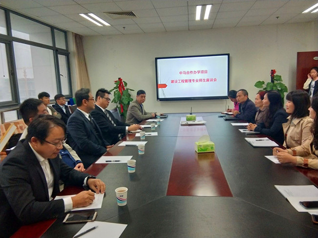 看望学生后,倪校长一行在学院会议室与中马项目老师和学生代表进行座谈,对中马合作办学在教学管理、拓展合作项目、双方互访交流、师生学历提升、游学访学等事项进行座谈,对师生提出的问题一一给予答复。