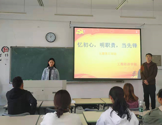 本次党日活动以“忆初心,明职责,当先锋”为主题,首先学生党员杨帆通过PPT放映的形式展示了老一辈共产党人的奋斗历程。使学生党员通过学习老一辈革命家先进事迹,对自己的初心和使命进行思考,不断锤炼自身的党性修养,在学生群体中起到先锋模范作用。最后主持人杨帆发言,提醒学生党员要不忘初心明确职责,担起使命争当先锋。