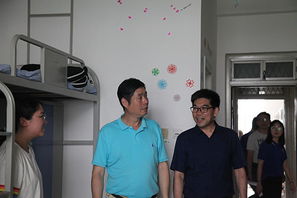 为了深入了解2019级学生基本情况,帮助新生尽快适应大学生活,9月10日下午四点,新葡萄8883官网amg党总支书记郭立君、院长孔祥慧、党总支副书记刘星、副院长杜兴亮,新生辅导员仪建东、丁贝贝一行深入学生宿舍看望2019级新生。