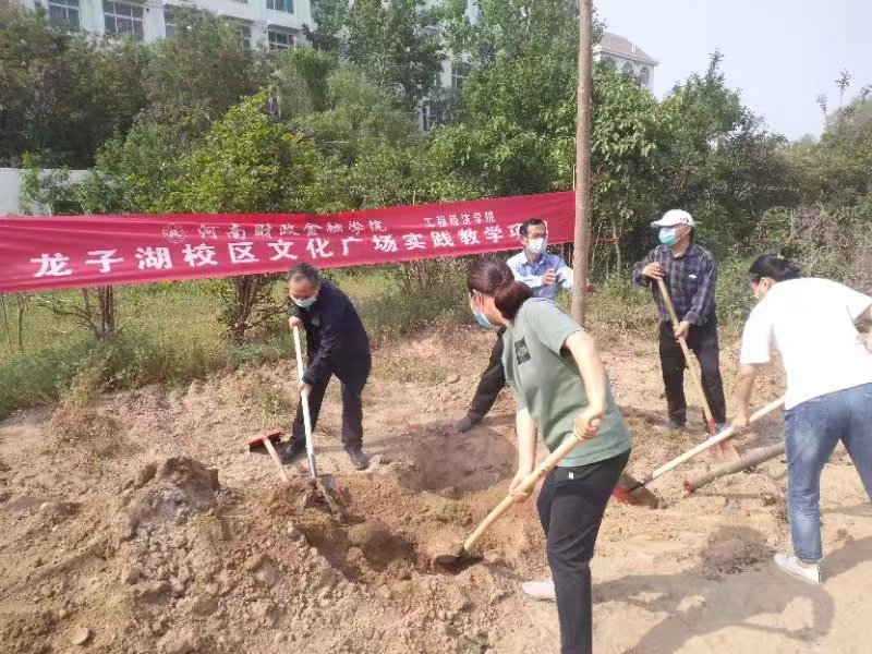 环境绿化改造是龙子湖校区文化广场实践教学项目的一部分,此次绿化所用树苗是兰考县焦裕禄学习教育基地无偿捐赠的100棵8-10公分泡桐树苗,泡桐育种专家亲自从兰考赶来现场指导栽种。