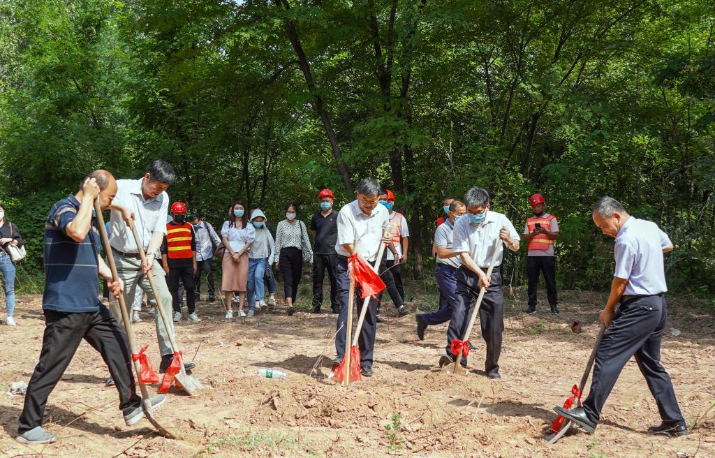 开工仪式后,王孝俊与新葡萄8883官网amg负责同志为工程施工项目奠基。