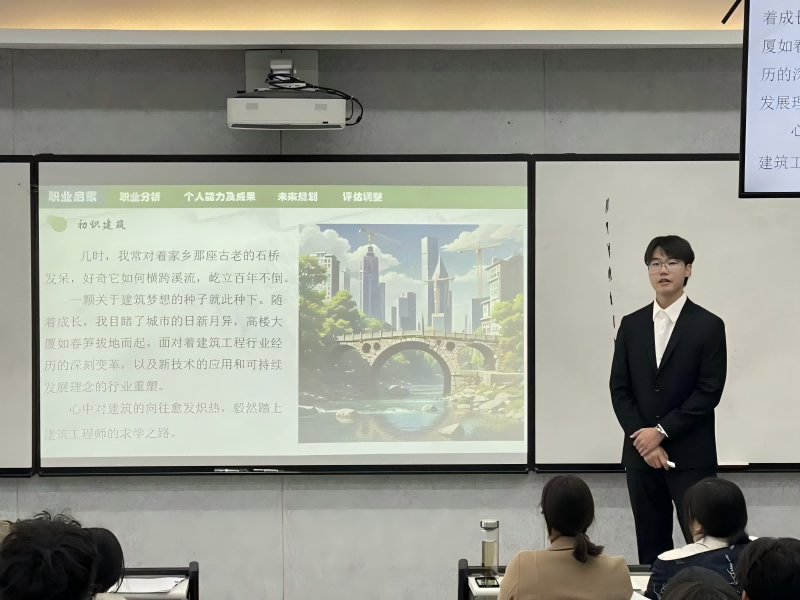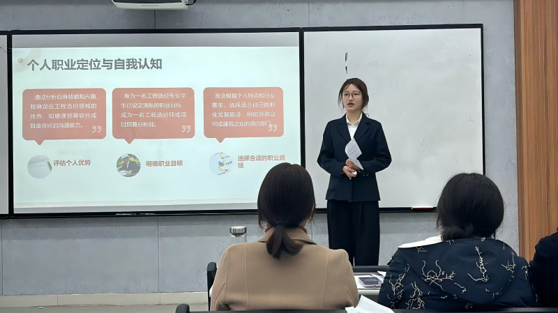比赛现场气氛热烈12名参赛选手分别从职业目标、学习实践、行动计划以及动态调整等多方面,条理清晰地阐述个人职业规划。有的同学立志成为行业内的卓越工程师,为基础设施建设贡献力量;有的则希望在工程造价领域深耕,把控好每一个项目成本;有的则将目光投向海外,探索就业更多可能。选手们自信大方的表现,彰显出对未来职业的憧憬和积极进取的态度。
