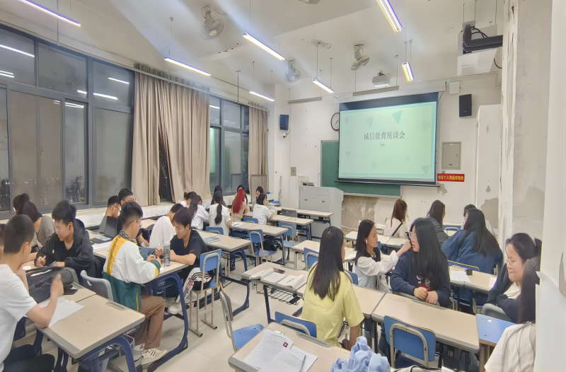 活动主要围绕“诚信待人诚信处事、诚信学习、诚信立身、诚信考试等主题展开PPT讲解、观影交流研讨和小组活动形式,引导学生在学习生活中大力宣扬诚信、践行诚信。在感悟分享环节中,同学们积极参加,对社会上和身边的诚信问题纷纷发表了自己的看法,一致认为诚信是大家做人做事的基础,今后要更加严格要求自己,树立正确的诚信观,不断提高自身修养,养成诚信品质