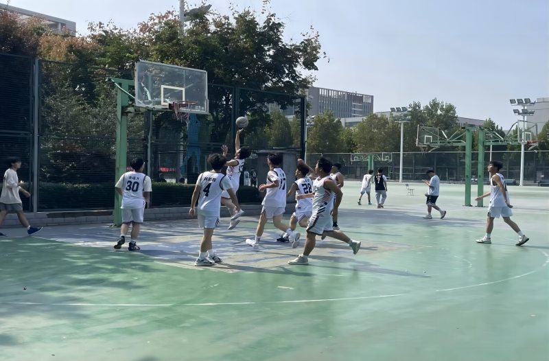 比赛过程中,每一支队伍都全力以赴,分秒必争,抢球、断球、防守、进攻;严守硬对、激烈争夺、默契传球、完美配合,时而转身跳投,时而三分远投,赢得了场下观众们的阵阵喝彩声。赛场上同学们遵循友谊第一、比赛第二的原则,尽情享受拼搏的满足感和奋斗的充实感,感受着青春活力飞扬的无限魅力。