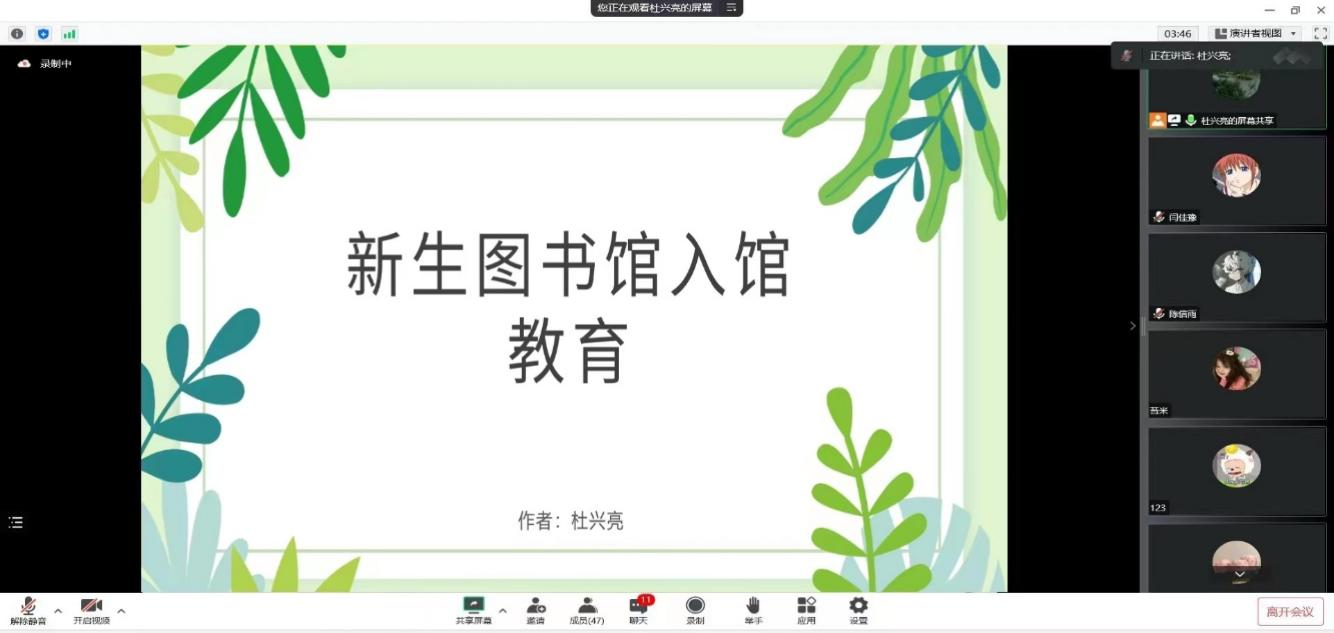 为帮助大一新生尽快了解和熟悉图书馆相关功能,合理有效利用图书馆各种资源和服务。10月13日,新葡萄8883官网amg院长杜兴亮对全体大一新生进行图书馆入馆线上教育。