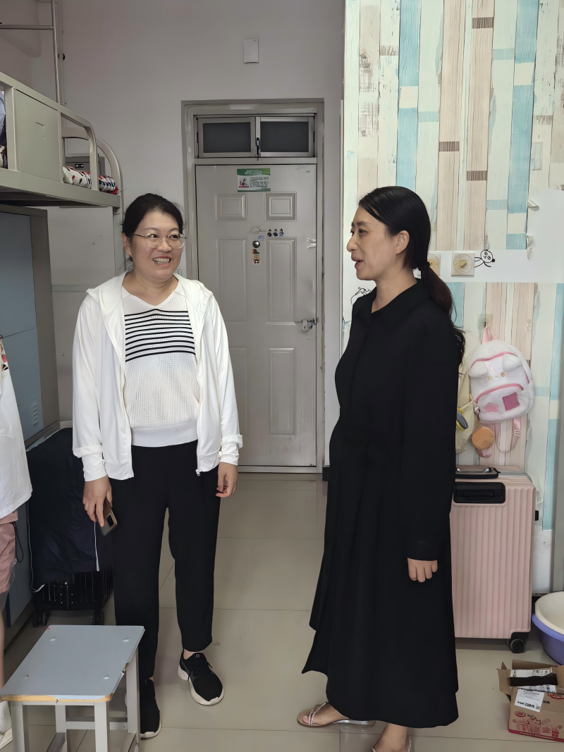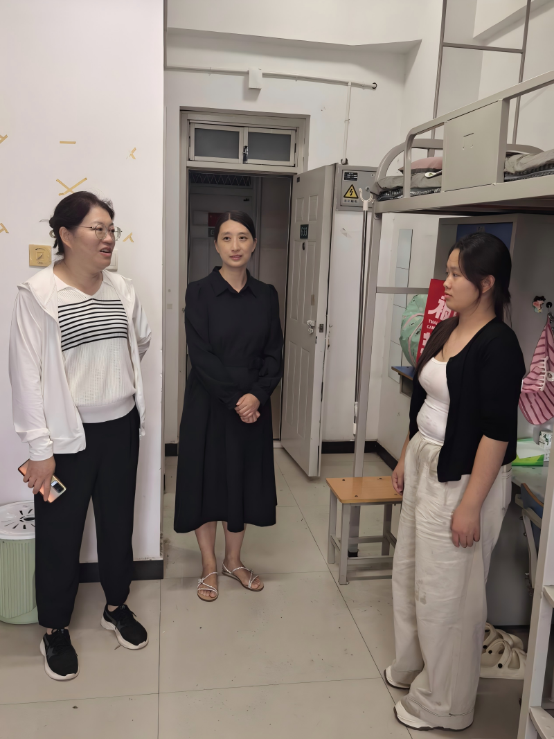走访中,学院领导和老师仔细察看新生们的居住环境,与新生亲切交流,“家是哪里的?”“以前住过校吗?”“有没有什么困难需要老师帮助?”“有什么规划吗?”……一句句贴心的话语,瞬间拉近了师生的距离。在一问一答中,倾听新生心声,了解新生诉求。勉励大家要珍惜时光,树立清晰目标,科学规划大学生活,提升综合能力,锻炼好身体,保持良好的精神状态,并叮嘱同学们要牢固树立安全意识,保护好人身财产安全,谨防诈骗,坚定意识形态,遇到困难要第一时间联系辅导员等。
