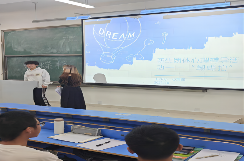 为增强新生班级凝聚力,提升学生环境适应能力和集体归属感,切实提升心理育人成效,近日,新葡萄8883官网amg在2313C教室举办“蝴蝶拍”新生主题团体心理辅导活动,学院心理工作专员毕尚美老师主持活动。