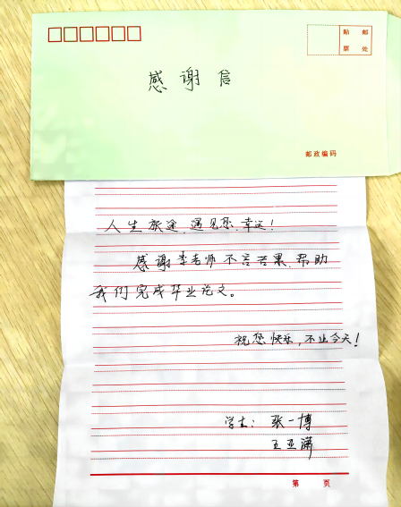 教师要做大先生,就要不断提高专业水平,要严谨治学,深耕科研,研究真问题。李老师始终坚持把坚定正确的政治方向放在首位,平时注重学生学术思维的锻炼,成立学生研究团队,定期指导、开展讨论。2017级工程造价专业毕业生李雨晴,其毕业论文《动态规划法在大型建筑工程项目的造价管理研究》在李旭辉老师的指导下,被评为河南省优秀学士学位论文。2018级毕业生张一博、王亚潇2位同学在李老师的指导下顺利完成毕业论文并被央企录用,毕业前依依不舍的给李老师悄悄的留下了感谢信。2019级学生李梓浩在李老师的指导下顺利完成毕业论文,并考取了江西财经大学的研究生,毕业前手捧鲜花致谢恩师......