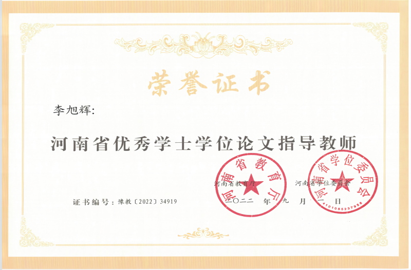 图16 李旭辉老师被评为河南省优秀学士学位论文指导教师