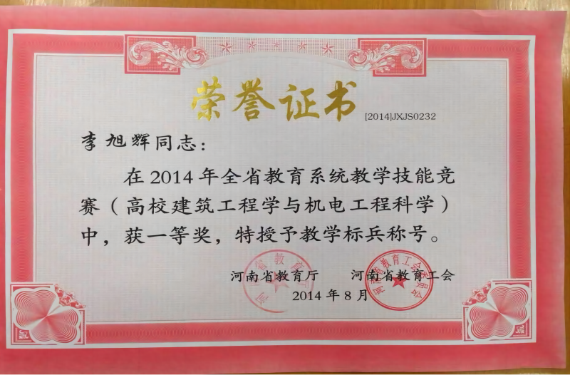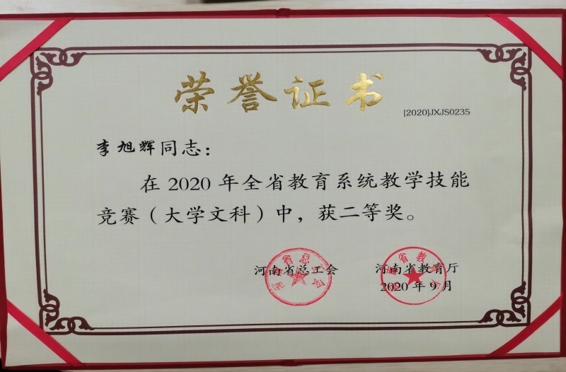 图13 李旭辉老师获河南省教学技能竞赛二等奖