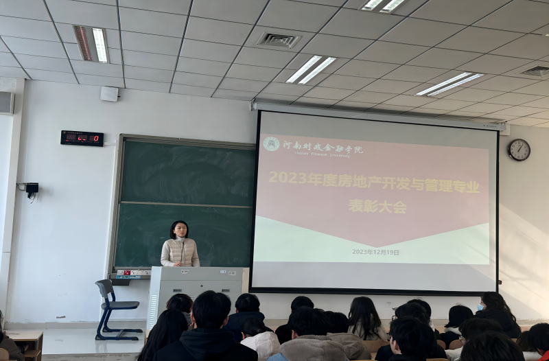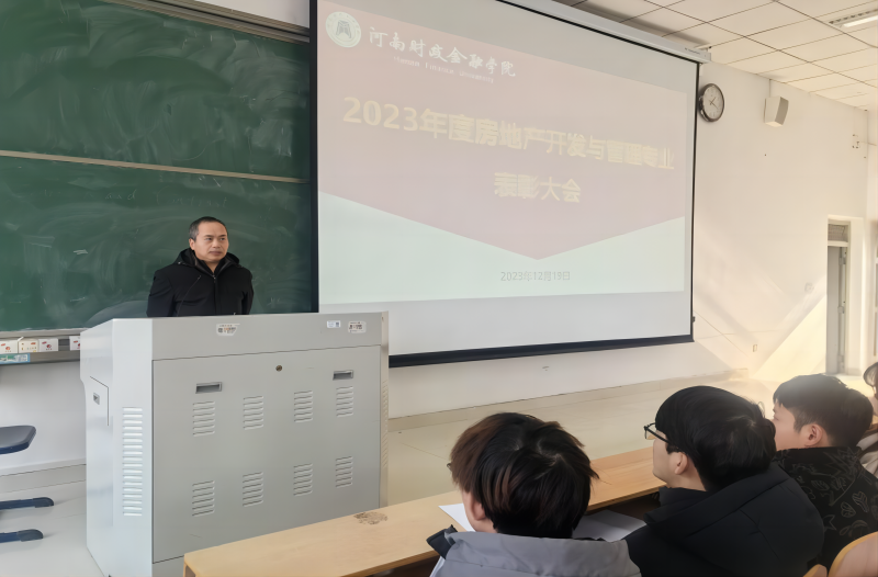 12月19日下午,房地产开发与管理教研室在1215D教室召开2023年度表彰大会。院长杜兴亮、党政办主任夏长会、教研室主任姜蕾、团总支副书记夏琪琦、部分教研室专任老师参加会议。会议由2023级房地产开发与管理专业辅导员吕航主持。