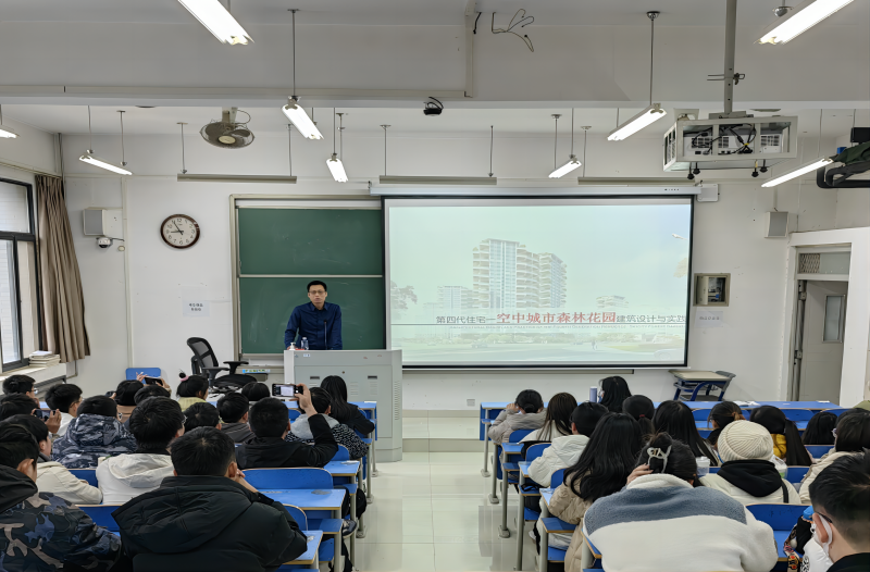 讲座以“第四代住宅—空中城市森林花园建筑设计与实践”为主题,围绕住宅建筑的发展历史及现状、新型住宅创新形式的必要性、第四代住宅的设计特点及优势、第四代住宅设计及实践中的问题及解决方案、第四代住宅实施案例欣赏及解析等五个方面进行展开。同学们还就自己感兴趣的问题与专家进行了互动交流。