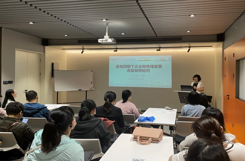 5月25日,新葡萄官网王静老师为省级校外实践教学基地—河南楷林置业有限公司做专题讲座。讲座在楷林中心7座负二层实训基地多功能室举办,讲座主题为“金税四期下企业税务稽查要点及如何应对”,参加讲座学员50余人。