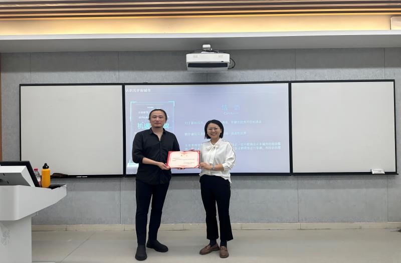 “单一的专业知识一定不能满足未来城市的建设需要,数字技术不再是专业学科,各行各业都需要进行掌握,利用你的想象力和技术面去征服未来吧”是张国庆对未来新地产人的诚挚期许。讲座结束后学院为张国庆颁发了特聘讲师证书,并和教研室老师进行了合影留念。