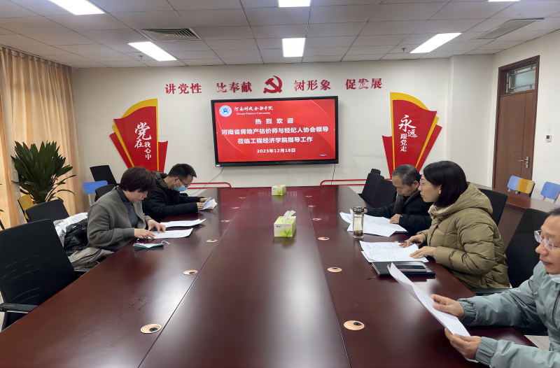 12月18日上午,河南省房地产估价师与经纪人协会副会长毛紫剑一行来新葡萄官网座谈交流。院长杜兴亮、党政办主任夏长会、房地产开发与管理教研室主任姜蕾、团总支副书记夏琪琦出席座谈会。