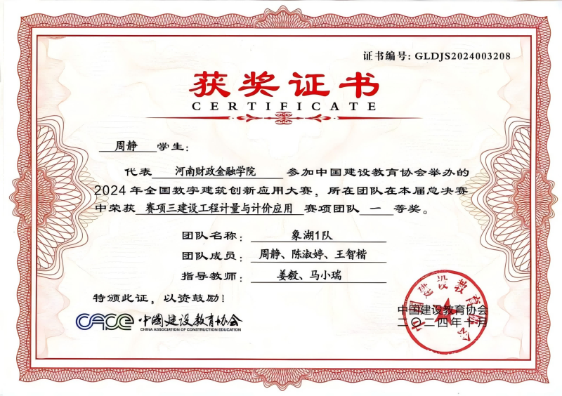 近日,由中国建设教育协会主办的2024年全国数字建筑创新应用大赛决赛成绩揭晓,新葡萄官网代表队在全国总决赛中荣获建设工程计量与计价应用赛项一等奖。