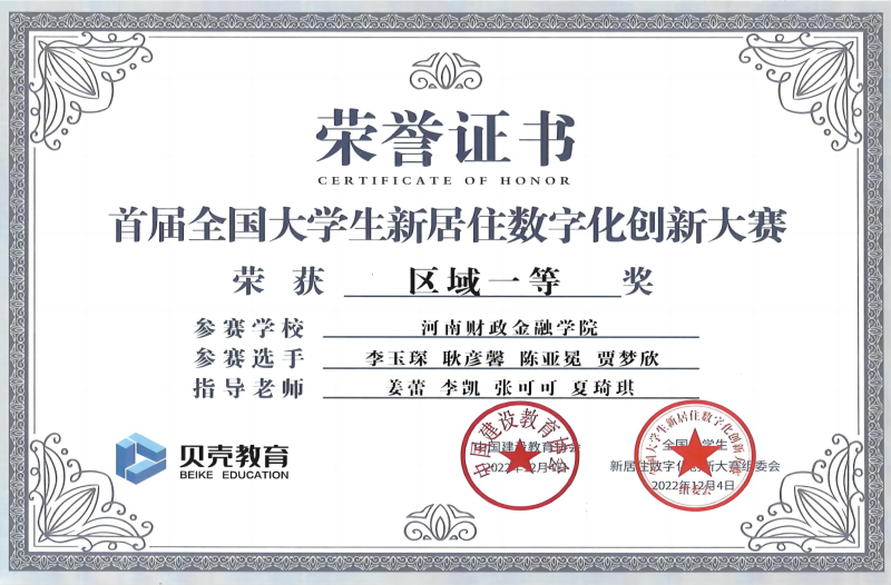 房地产专业学生荣获全国新居住数字化创新大赛区域一等奖